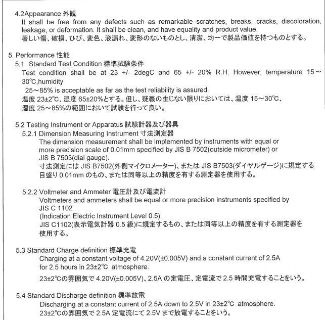 Şarj yöntemi: sabit voltaj ve sabit akım (4,2 V) nominal voltaj: 3,7 V