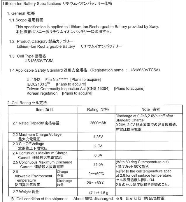Model: US18650VTC5A