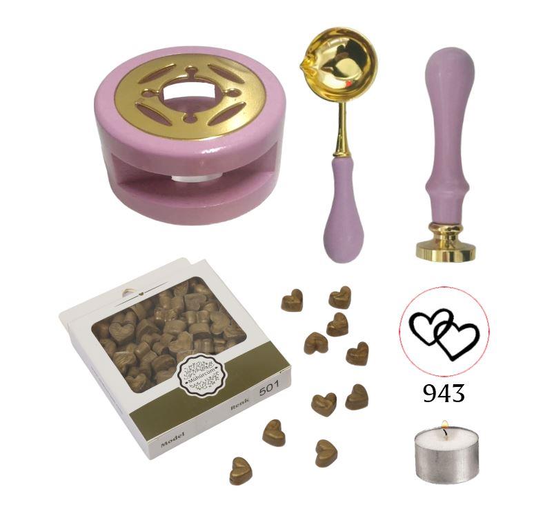 Davetiye Mum Mühürü Uygulama Seti Leylak Renk 943 Çifte Kalp